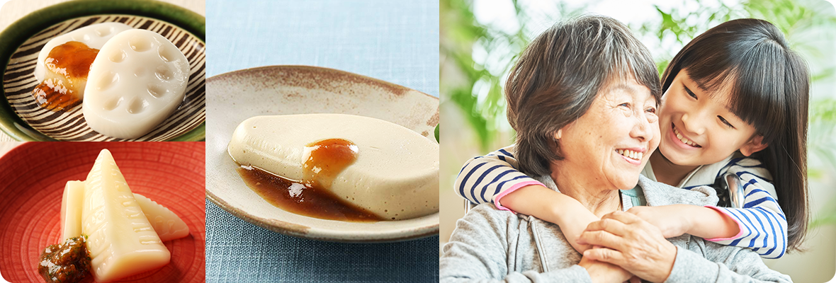 様々な年代の方にお召し上がりいただきたいという思いから、あえて「介護食」とはせずに「やわらか食」としております。
