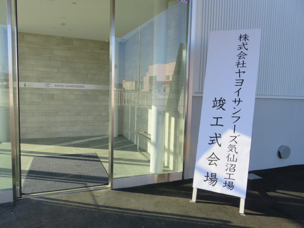 竣工式後、弊社社長黒本より「気仙沼工場は、次なるステージの第一歩であると考えている。同時に、東日本大震災で被災した旧ヤヨイ食品気仙沼工場の再建の意味もあり、社員一同の悲願でもあった。」と挨拶し、気仙沼工場の設計者である株式会社横河建築設計事務所様、株式会社竹中工務店様はじめとする施工会社様へ感謝状贈呈を行いました。