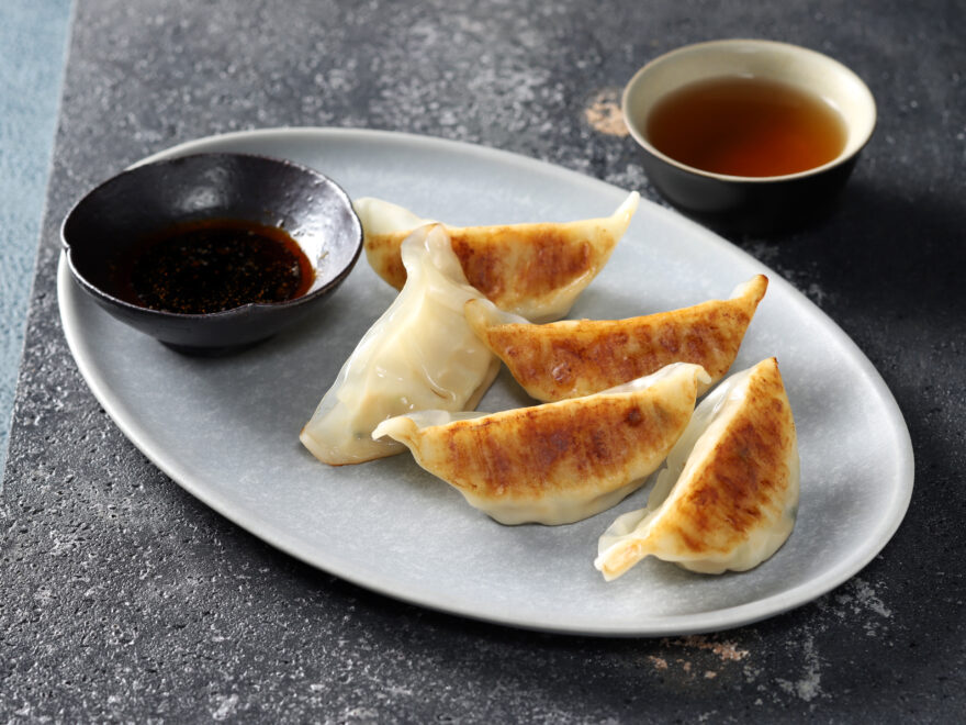袋のまま電子レンジ調理が可能な、焼き済みの餃子です。大豆たんぱくから作った“大豆ミート”と野菜(キャベツ・タマネギ・ニラ)を使った具材を、レンジ調理しても柔らかい皮で包みました。