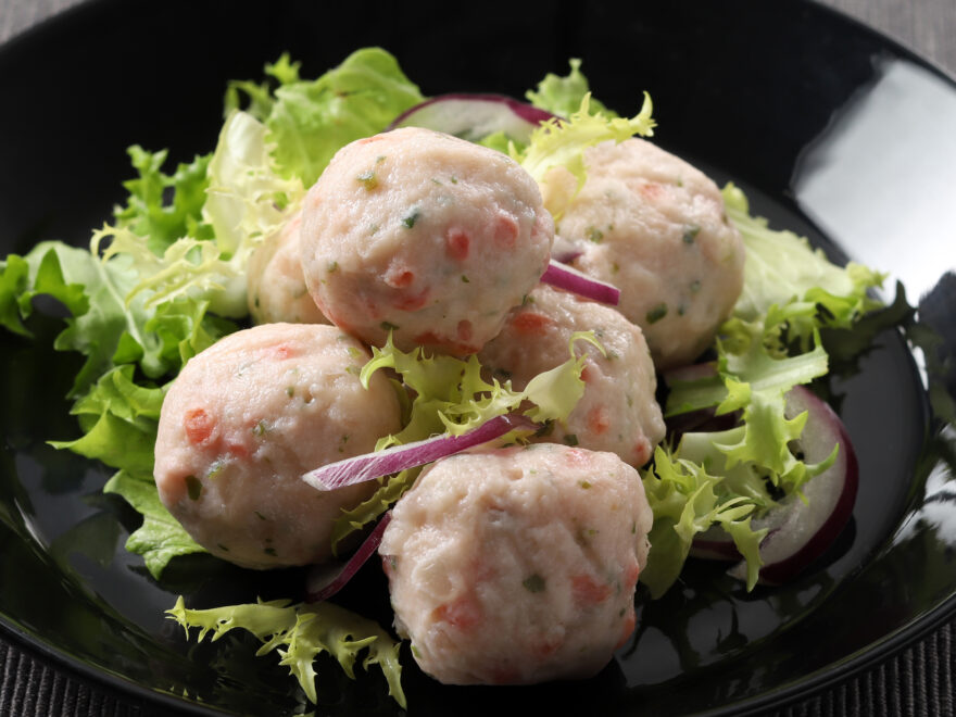 タラのすり身と紅生姜・豆腐・アオサ粉を合わせた、ふわっとした食感の素材系商品です。紅生姜のピリッとした辛さとパンチのある味付けは、おつまみにもおすすめです。