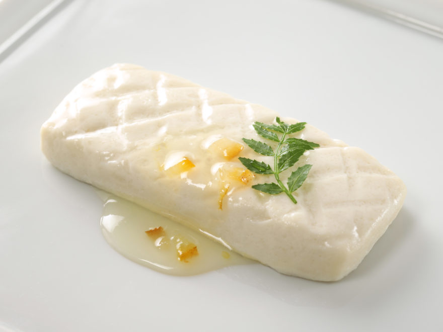 噛み切りにくいイカを、独自の製法で加工し、やわらかなムースに仕上げました。表面に鹿の子模様をつけることで、本物らしさを追求しました。