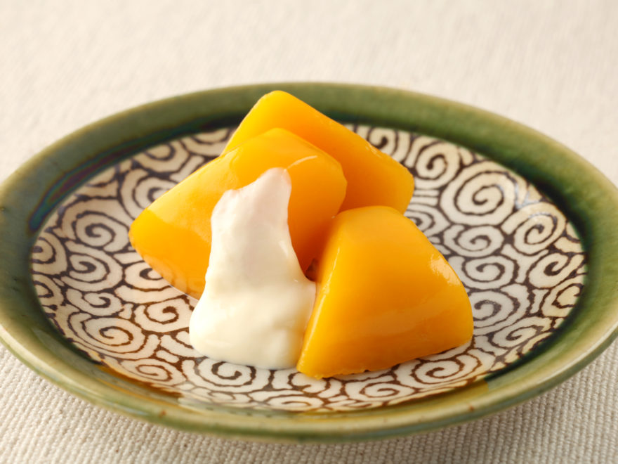 甘みのあるかぼちゃを使用したゼリーです。カボチャの持つしっとりとした舌触りを再現しています。