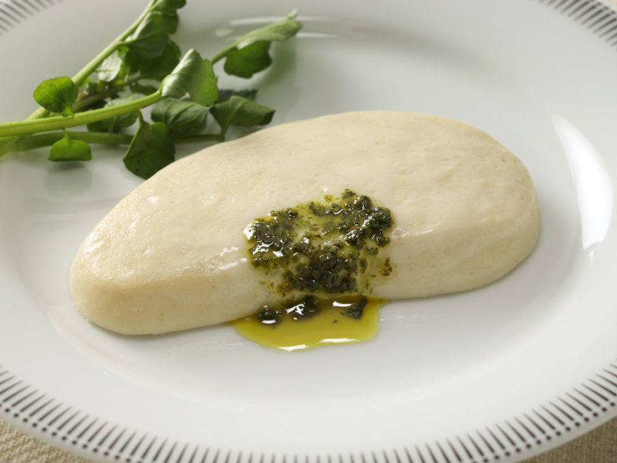 鶏肉を独自の製法で加工し、舌ざわりの良いやわらかなムースに仕上げました。鶏肉本来の風味を活かした味付けで、さまざまなメニューにお使いいただけます。
