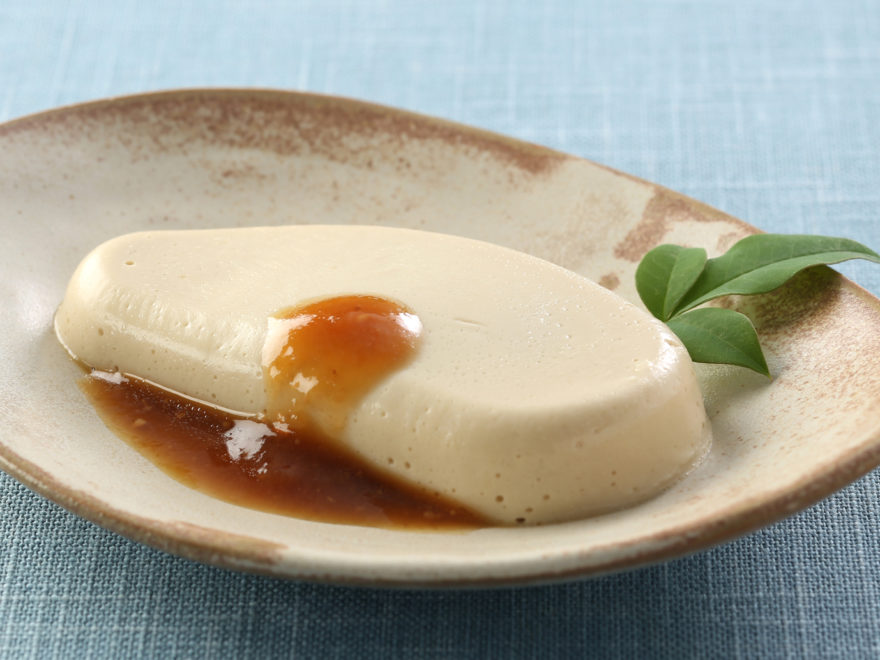 国内産のさばを使ったムースに、かつおだしをきかせた赤味噌のソースをかけました。おかゆなどの主食がすすむ一品です。