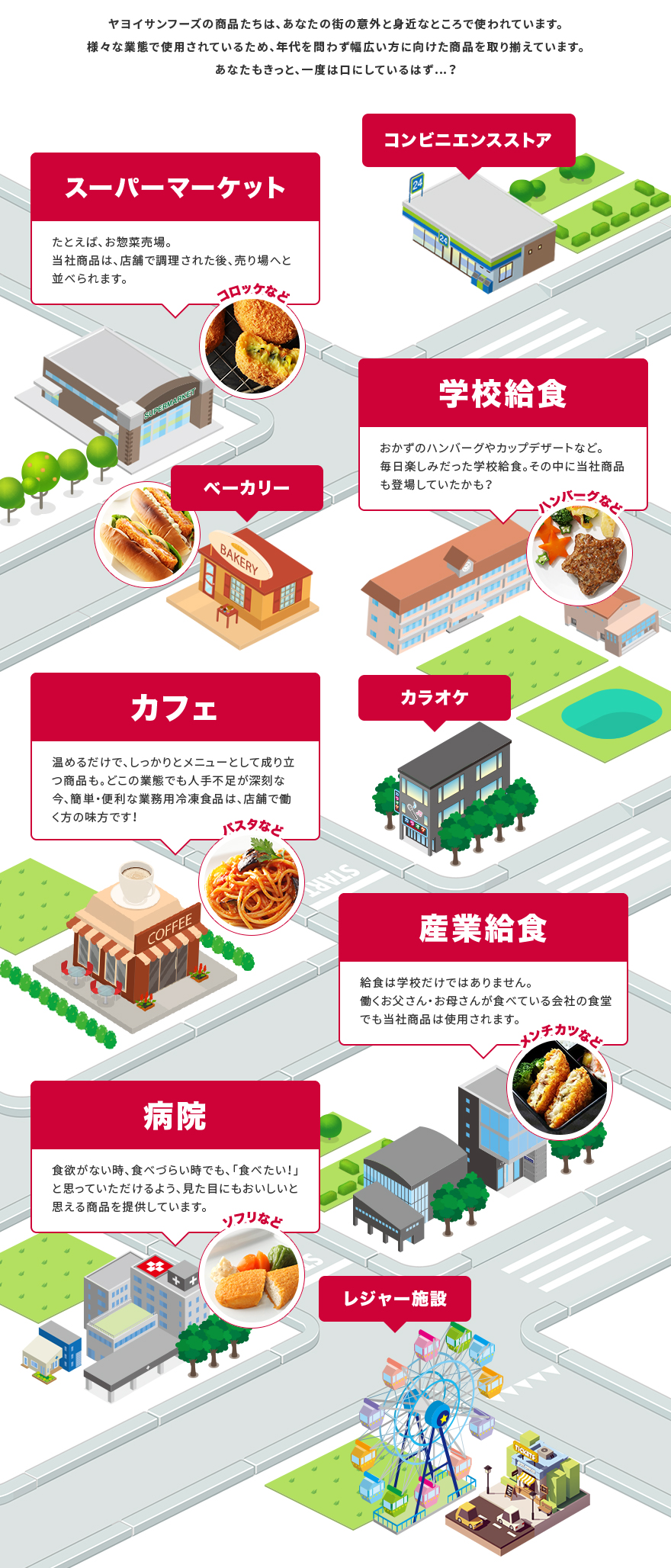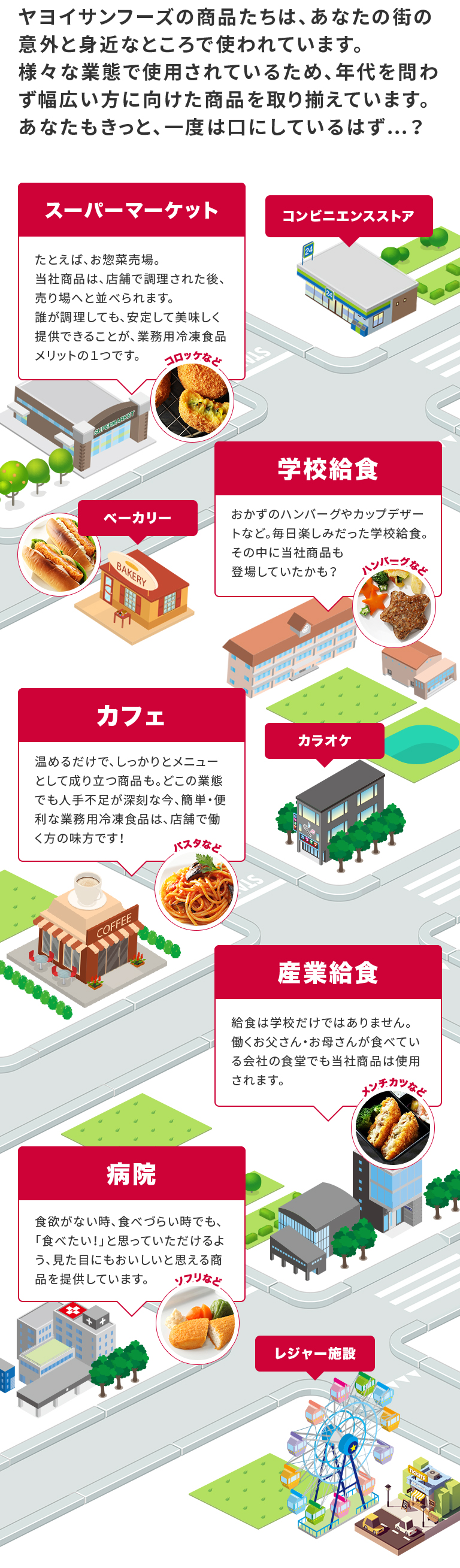 ヤヨイサンフーズの商品は様々なところで使われています!