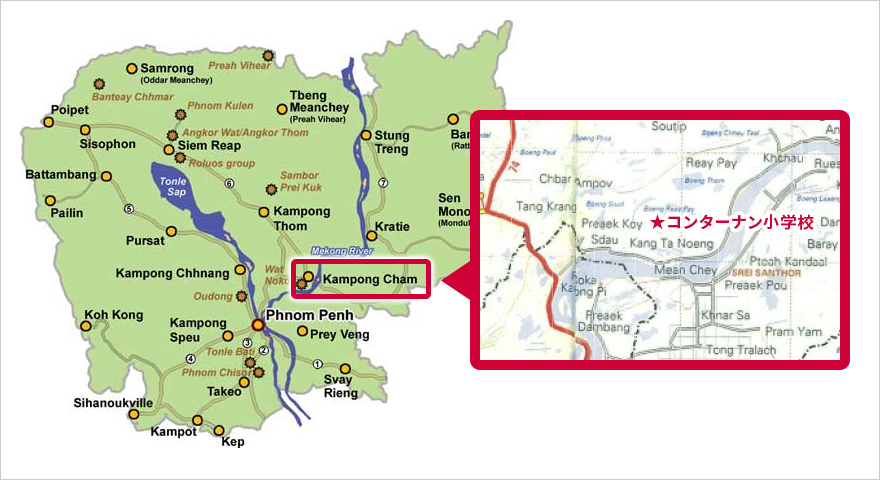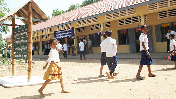 弊社を育ててくれた学校や給食、そして子供たちへの恩返しの一環として、内戦の影響で満足に教育が受けられないカンボジアの子供たちのためにコンターナン小学校に新しい校舎を寄贈しました。