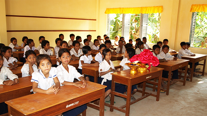 JHP・学校をつくる会と力を合わせ、 カンボジアのコンターナン小学校に校舎を寄贈いたしました。