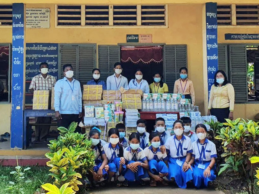 カンボジアヤヨイ学校支援活動として、カンボジアヤヨイ学校のあるコンターナン小学校(カンボジア コンポンチャム州 )に、マスク、アルコール、除菌ハンドジェル、石鹸を寄贈いたしました。 寄贈物資が、子供たちへの衛生教育の一助 となること、子供たちが少しでも安心して学校生活が送れるようにと願っております。